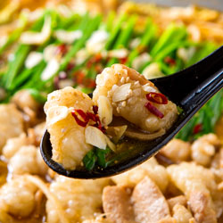 最近では、コラーゲンたっぷりのホルモンとたくさんの野菜が一度に味わえるという理由で、女性に人気料理となっています。 |