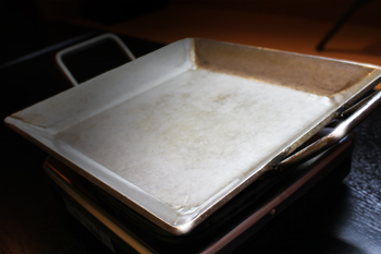 しんかいのホルモン鉄板は、特注の厚さ9mmの分厚い鉄板で、新鮮な黒毛和牛のホルモンと、野菜と濃みそだれで水を使わずに豪快に炊き上げます。 |